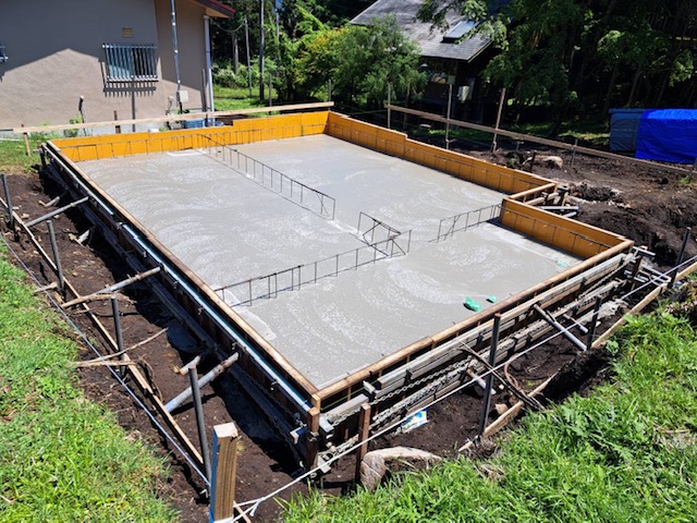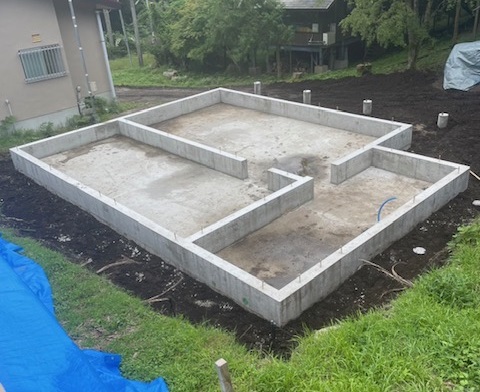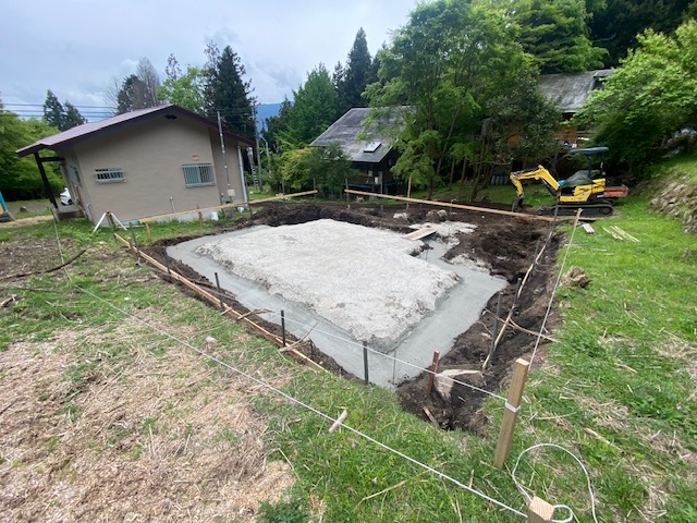 ここまでが、T様邸ログハウス新築工事の「基礎完成」までの工程となります。