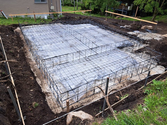 - 捨てコンクリート打設と基礎配筋
