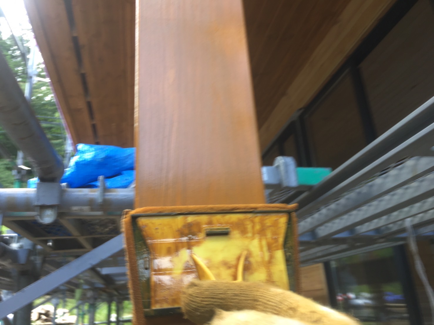 宇陀市 外壁塗装 ログハウス ナフタデコール塗装完了後の柱