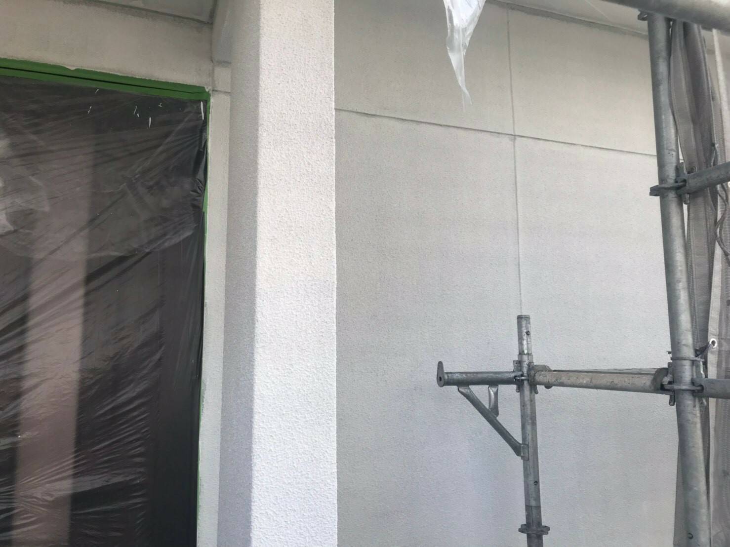 古い外壁の色が完全に隠れ、真っ白で肉厚な下地が出来上がりました。